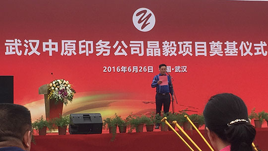 10:00整奠基儀式隆重開(kāi)始,首先由武漢中原印務(wù)公司董事長(zhǎng)致開(kāi)幕詞,對(duì)東西湖區(qū)各位領(lǐng)導(dǎo)及相關(guān)的領(lǐng)導(dǎo)蒞臨現(xiàn)場(chǎng)表示最熱烈的歡迎和最衷心的感謝!