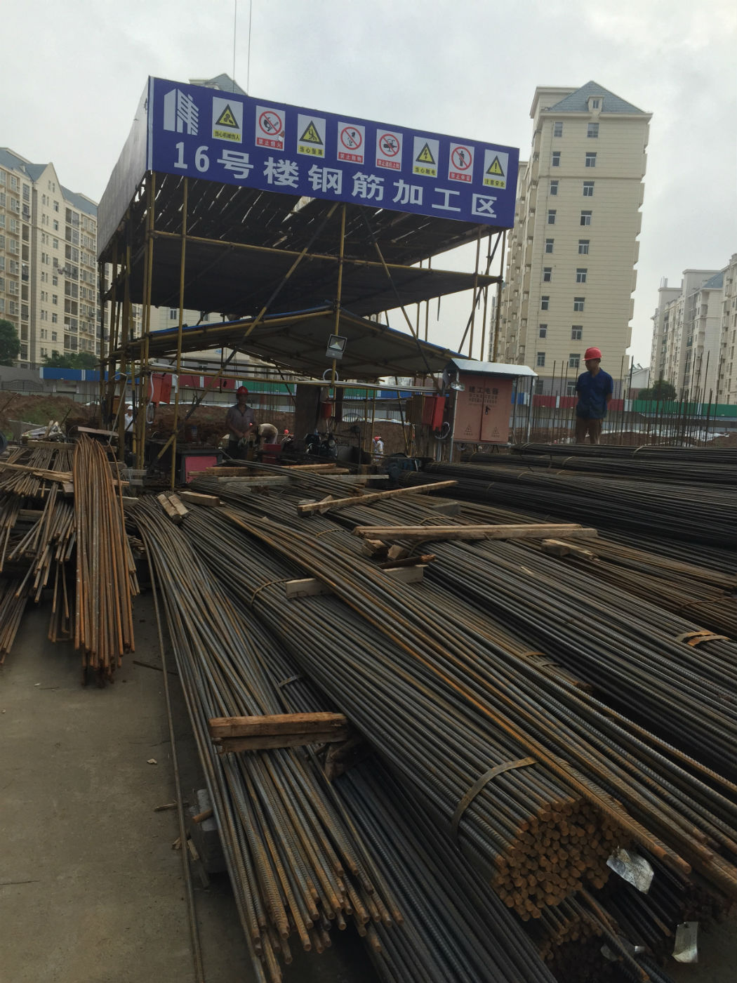 進(jìn)入大門,工地上呈現(xiàn)熱火朝天、一片繁忙的景象,首先映入眼簾的是鋼筋加工棚里鋼筋堆放整齊,操作間機(jī)械設(shè)備都采取了相應(yīng)的防護(hù)措施,施工場地經(jīng)過通道硬化處理,外側(cè)排水溝施行有組織排水,道路排水通暢,工地?zé)o積水現(xiàn)象。材料堆放區(qū)搭設(shè)有工棚,各種成品、半成品及周轉(zhuǎn)材料的堆放井然有序,并做了相應(yīng)的原材料保護(hù)措施。