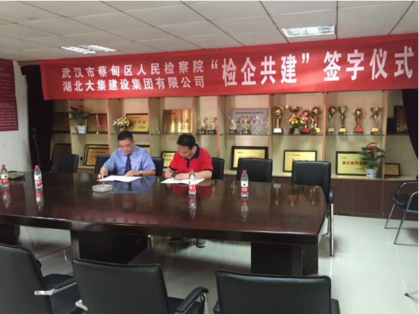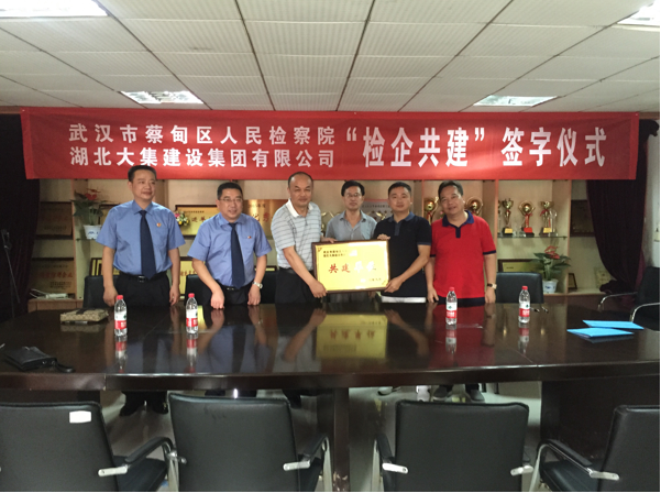 隨后武漢市蔡甸區(qū)人民檢察院與湖北大集建設(shè)集團有限公司在集團公司會議室舉行“檢企共建”簽約和授牌儀式。共同簽署了《檢企共建協(xié)議書》。集團公司董事長徐濤、總經(jīng)理徐遠征對蔡甸區(qū)檢察院給予企業(yè)的幫助和支持表示感謝,并號召公司全體員工要提高思想認(rèn)識,在蔡甸區(qū)人民檢察院的指導(dǎo)下,認(rèn)真開展預(yù)防職務(wù)犯罪工作,確保企業(yè)正常經(jīng)營活動的有序開展。