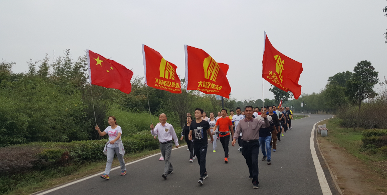 “1234,1234,大集,大集,齊心協(xié)力,奮勇向前,只爭朝夕……”整齊劃一的吶喊聲和腳步聲迎面而來,鮮艷奪目的企業(yè)司旗,年輕似火的團隊成員一一盡現眼簾,大家表現得十分活躍,動作協(xié)調,緊密配合,處處可以感受到團隊合作的力量。在這里,在此時,正在如火如荼的上演一場熱身賽。這里是后官湖濕地公園的跑道上,也是湖北大集建設集團為參加本月底半馬比賽而組織的集結地。