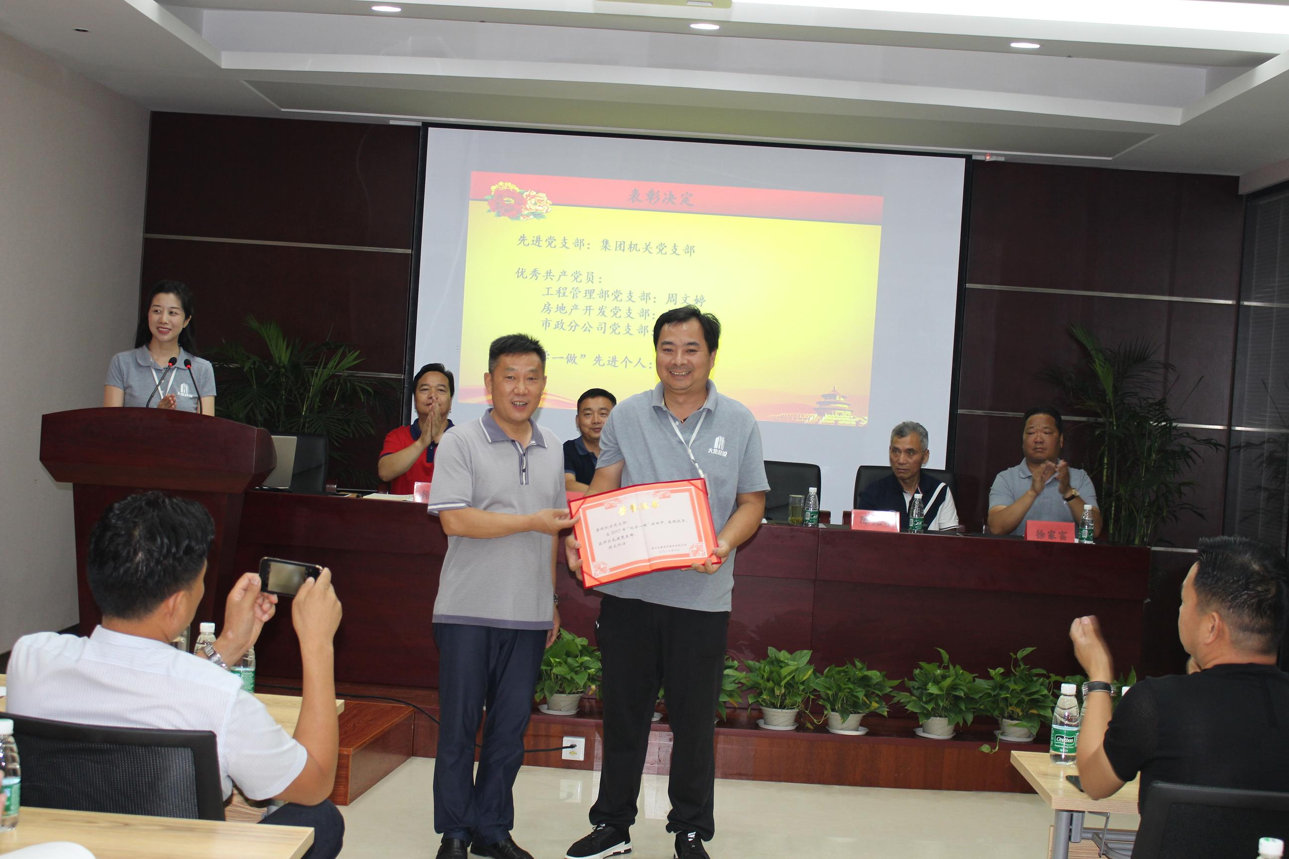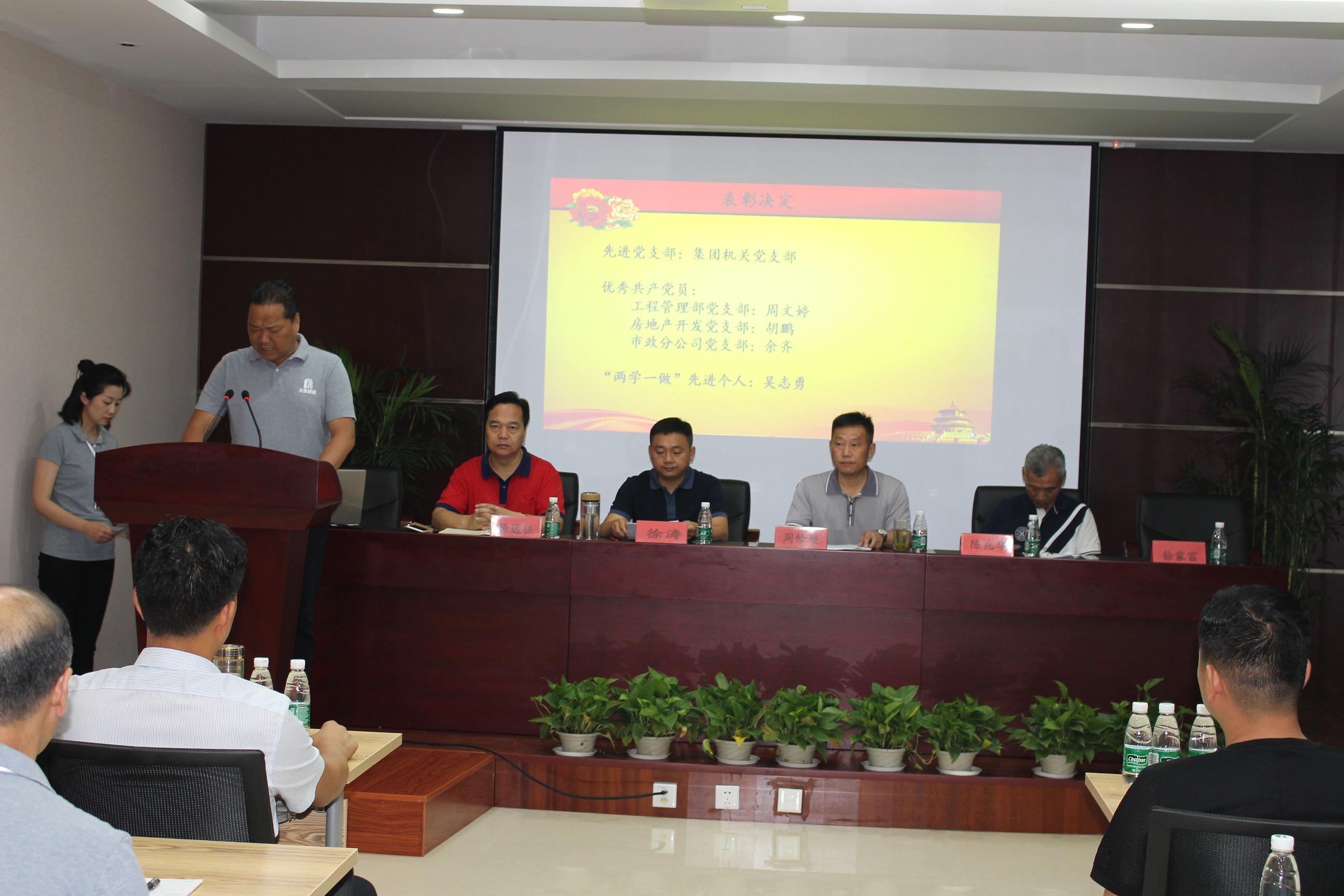 接著,由工程管理部黨支部書記徐家富同志宣讀中共湖北大集建設(shè)集團有限公司黨委《關(guān)于集團公司黨委和支部人員組成的決定》及《關(guān)于表彰先進黨支部、優(yōu)秀黨員的決定》。