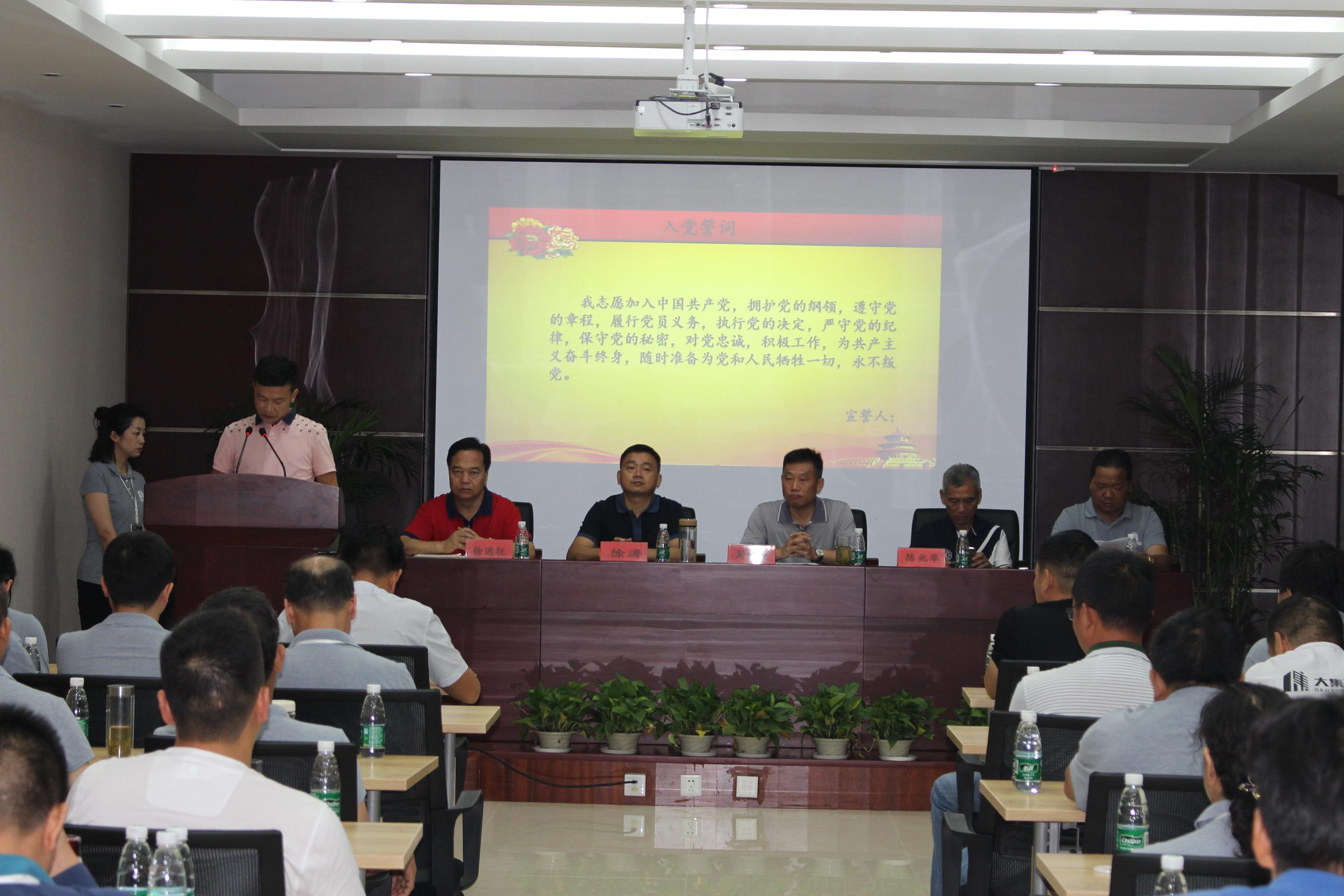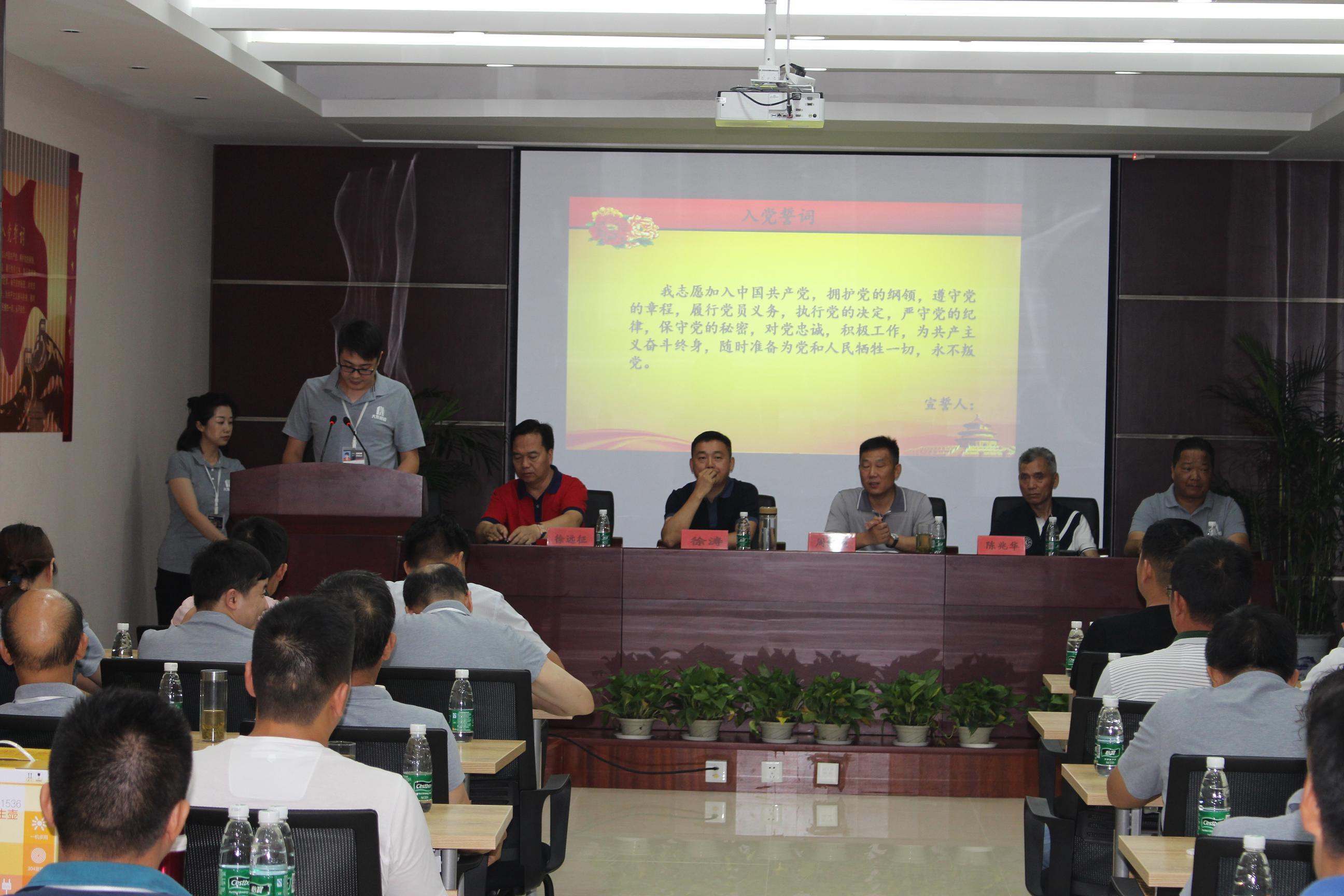 在慷慨激昂的大合唱《沒有共產(chǎn)黨就沒有新中國》中,會議拉開了序幕,熱血沸騰的歌聲結(jié)束后,由集團黨委副書記徐遠征同志帶領(lǐng)新黨員做入黨宣誓,老黨員重溫入黨誓詞。