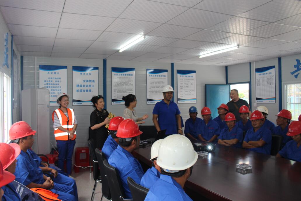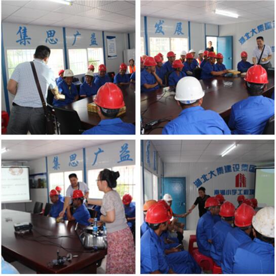 8月30日,市城建委、市人事局、市建筑工程質(zhì)量監(jiān)督站、蔡甸區(qū)監(jiān)管站一行領(lǐng)導蒞臨集團南湖小學項目開展送教活動,現(xiàn)場向工人發(fā)放保溫杯,毛巾、球鞋、收音機等生活用品和文娛用品,并通過有獎問答的形式向現(xiàn)場務(wù)工人員進行了生動有趣的安全教育和法律保險知識普及,以增強農(nóng)民工的道德法制意識和安全文明施工意識,更好地適應(yīng)現(xiàn)代化城市建設(shè)的需要!活動現(xiàn)場,兩位老師親切和藹,工人積極踴躍,場面熱烈活絡(luò)!