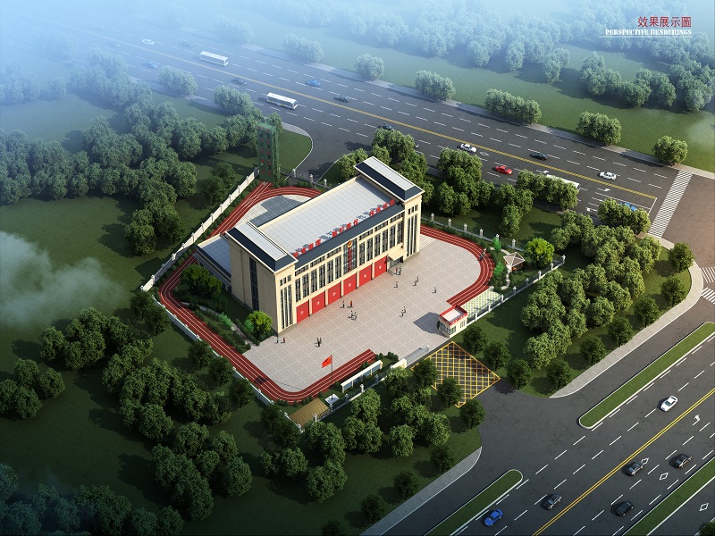大集消防站項目位于蔡甸區(qū)大集街知音湖大道與天鵝湖大道交叉口西南角,總建筑面積3848.62平方米,平行知音湖大道布置1棟4層業(yè)務大樓,南端垂直業(yè)務大樓附建1棟1層食堂,另外配套有訓練塔、門房等輔助設施。業(yè)務大樓和食堂外側為環(huán)形消防車道(兼作訓練跑道),項目分別朝向知音湖大道和天鵝湖大道開設主、次出入口。