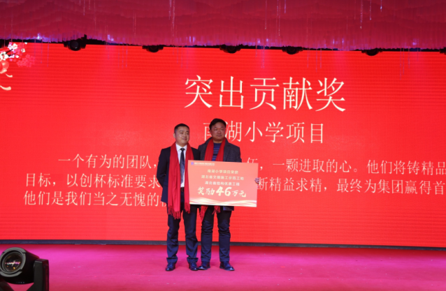 集團(tuán)董事長(zhǎng)徐濤為南湖小學(xué)項(xiàng)目頒發(fā)特別貢獻(xiàn)獎(jiǎng)