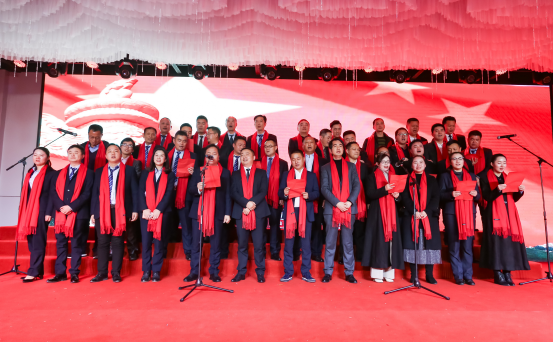 湖北大集建設(shè)集團(tuán)與武漢花博匯中高層領(lǐng)導(dǎo)合唱歌曲《歌唱祖國(guó)》