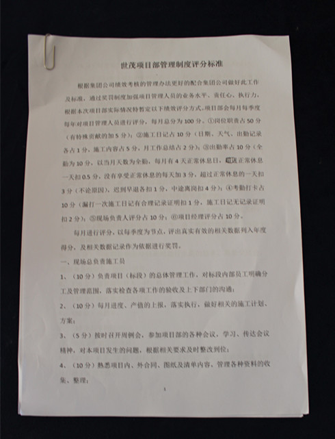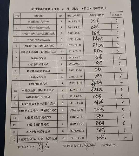 目前,集團(tuán)實施的項目績效考核制度是今年2月份修訂完善后發(fā)布的,該制度新增了垂直管理環(huán)節(jié),將項目部相關(guān)崗位納入集團(tuán)統(tǒng)一管理,同時通過《員工目標(biāo)管理卡》將項目月度目標(biāo)分解到每位項目人員頭上,使項目人員更加深刻的明確自身崗位職責(zé),從而真正實現(xiàn)目標(biāo)責(zé)任到人。