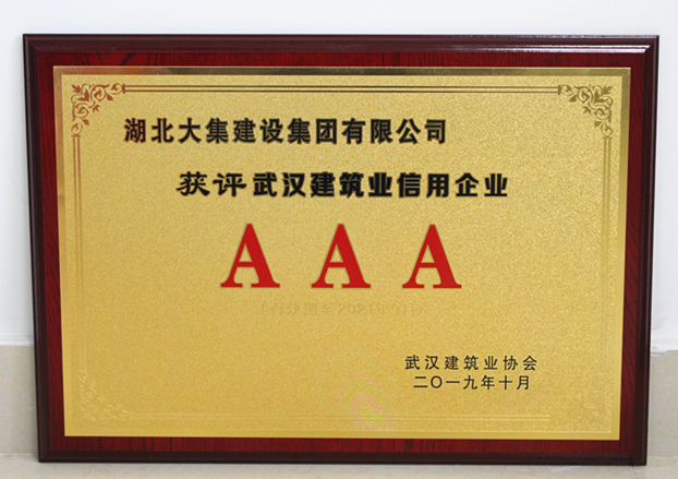 近日,經(jīng)武漢市各區(qū)建筑業(yè)協(xié)會推薦、專家評委初審、市各大站辦審核、評定領(lǐng)導(dǎo)小組和會長辦公會審定,并在武漢市公共資源交易中心和武漢建筑業(yè)協(xié)會官網(wǎng)同步公示無異議后,湖北大集建設(shè)集團(tuán)有限公司再次獲評“武漢建筑業(yè)AAA級信用企業(yè)”。