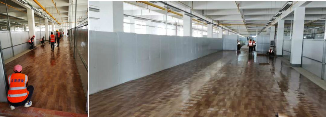 2月15日一早,在接到承建方艙醫(yī)院的緊急任務(wù)后,董事長(zhǎng)徐濤火急召集全體項(xiàng)目經(jīng)理部署改建工作,進(jìn)行現(xiàn)場(chǎng)勘測(cè)。由于本次任務(wù)很重,改造現(xiàn)場(chǎng)主要集中在3-5樓,包括護(hù)士站及病房共計(jì)12000多平,1600個(gè)床位,以及隔斷墻、廁所及配套設(shè)施。