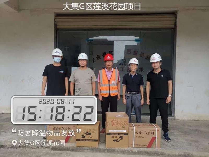 大集G區(qū)蓮溪花園項(xiàng)目、大集街農(nóng)村污水治理項(xiàng)目、大集景綠網(wǎng)紅特色小鎮(zhèn)項(xiàng)目、世茂龍灣47#號(hào)地塊別墅樓工程、黃星大道加油站項(xiàng)目、年產(chǎn)80萬(wàn)套總成項(xiàng)目、常貴路西延伸段項(xiàng)目、泰禾君悅花園項(xiàng)目、碧桂園光谷云鏡項(xiàng)目……每到一處,集團(tuán)工程部都會(huì)將購(gòu)買好的毛巾、風(fēng)油精、人丹、十滴水、藿香正氣水、蚊不叮等防暑降溫物資送到項(xiàng)目人員手中,并要求各項(xiàng)目部一定要把施工人員的身體健康放在首位,要在全力以赴抓質(zhì)量、搶進(jìn)度、創(chuàng)佳績(jī)的同時(shí),嚴(yán)格按照國(guó)家有關(guān)規(guī)定,把防暑降溫工作落實(shí)好、做到位,要根據(jù)天氣氣溫的變化,合理安排工作時(shí)間,作好安全預(yù)防措施、備足防暑降溫物質(zhì),讓員工們安全度過(guò)高溫天氣。