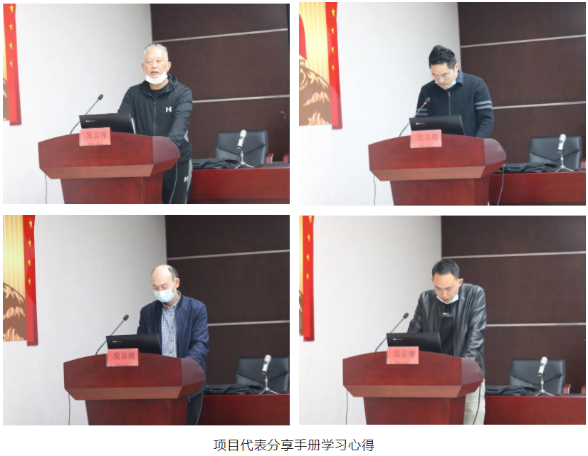項目經(jīng)理代表周感書、房建施工員代表魏巍、房建安全員代表張彥偉以及市政施工員代表彭文杰依次上臺,從不同角度分享了他們對《湖北省質(zhì)量安全手冊》的學習心得。