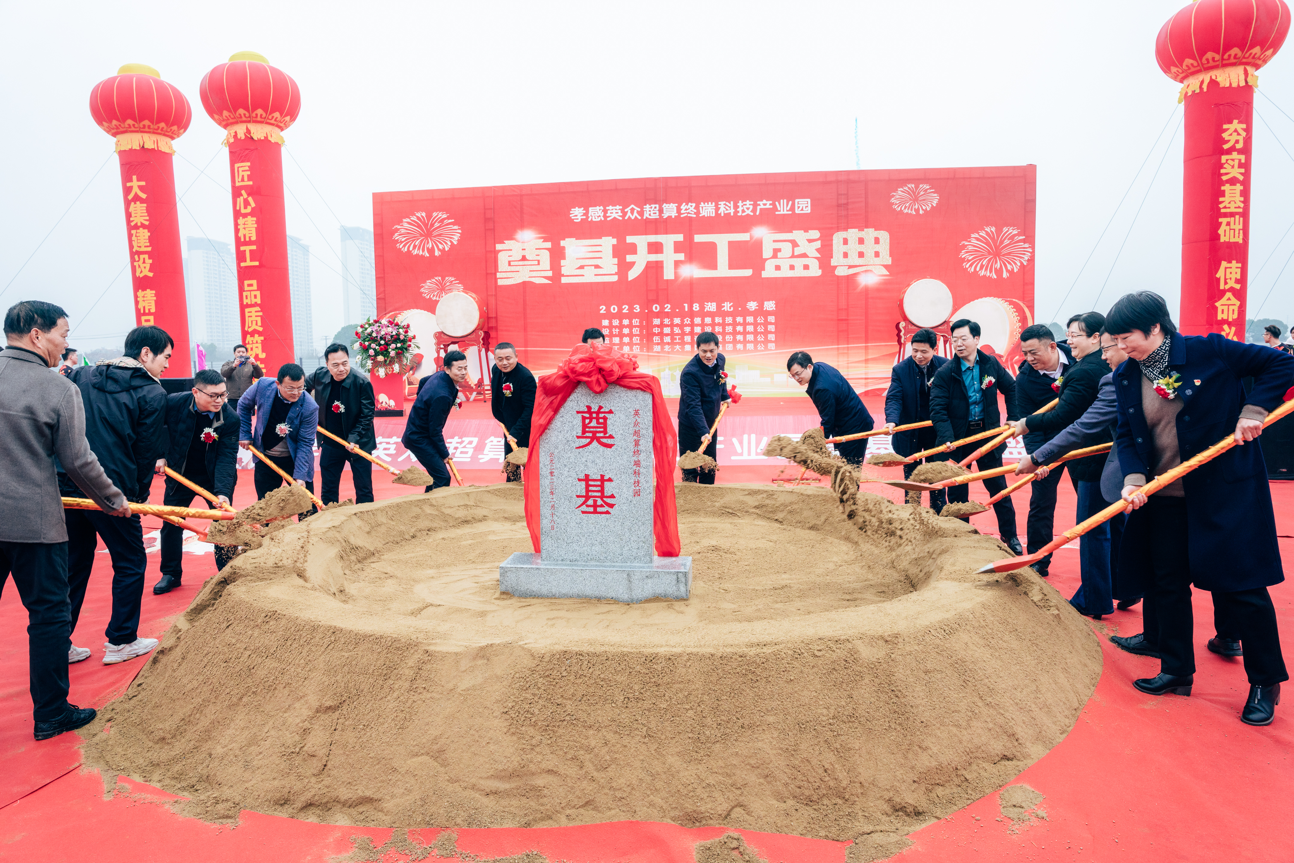 2月18日上午,由湖北大集建設集團總承包的英眾超算終端科技產業(yè)園生產項目開工儀式隆重舉行,孝感市委常委、統(tǒng)戰(zhàn)部部長、高新區(qū)黨工委書記賀衛(wèi)東,高新區(qū)黨工委副書記、管委會主任舒俊,市委統(tǒng)戰(zhàn)部常務副部長盛夏,高新區(qū)黨工委委員、紀檢監(jiān)察工委書記張文平等政府領導,上海英眾信息科技有限公司兼湖北英眾信息科技有限公司總經理劉純堅,上海英眾信息科技有限公司董事會秘書、副總經理孫峰,湖北銘洛科技有限公司董事長阮洋,以及集團公司董事長徐濤、總經理徐遠征、董事許江、副總經理徐家富出席參加了奠基儀式。
