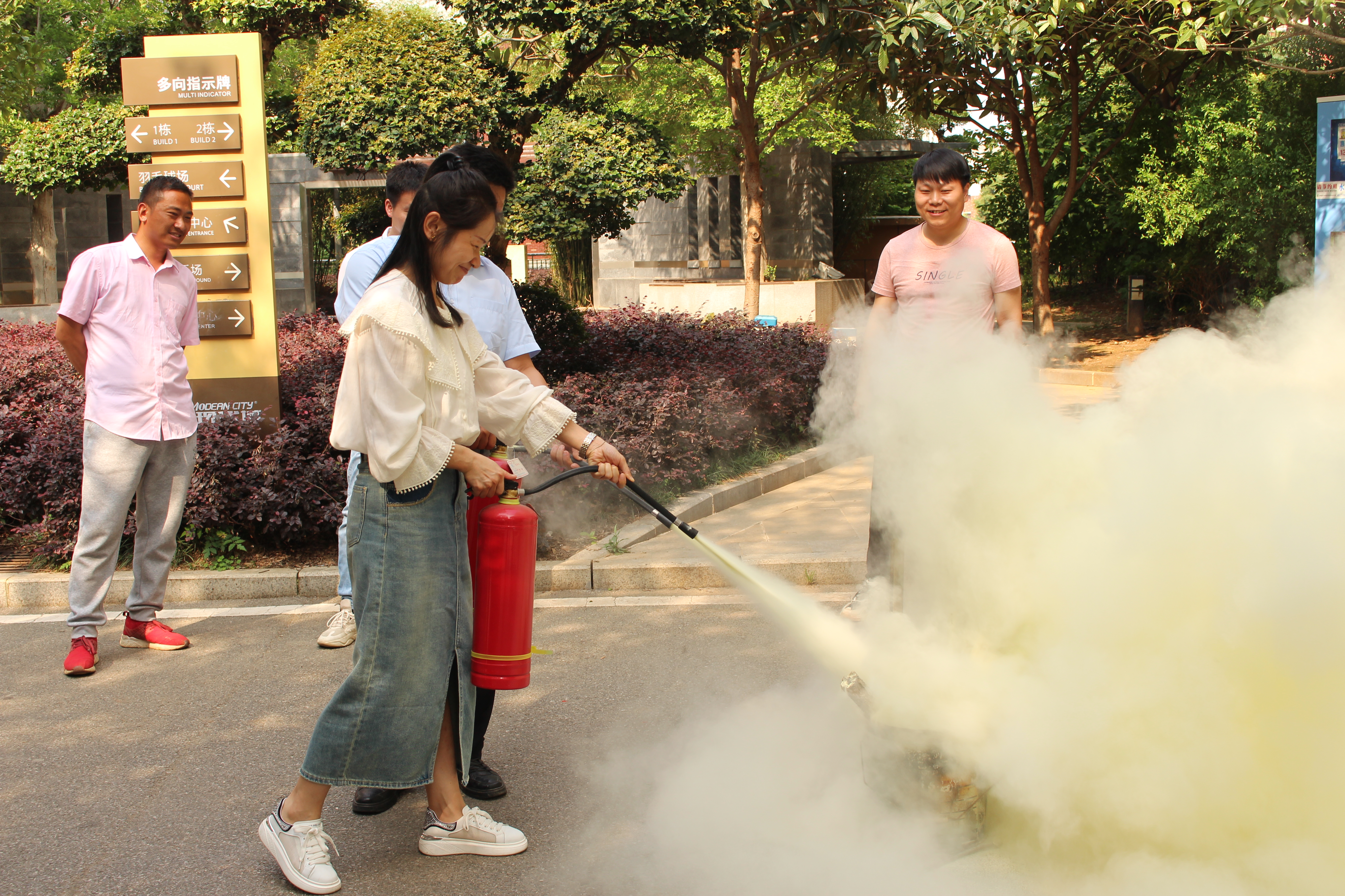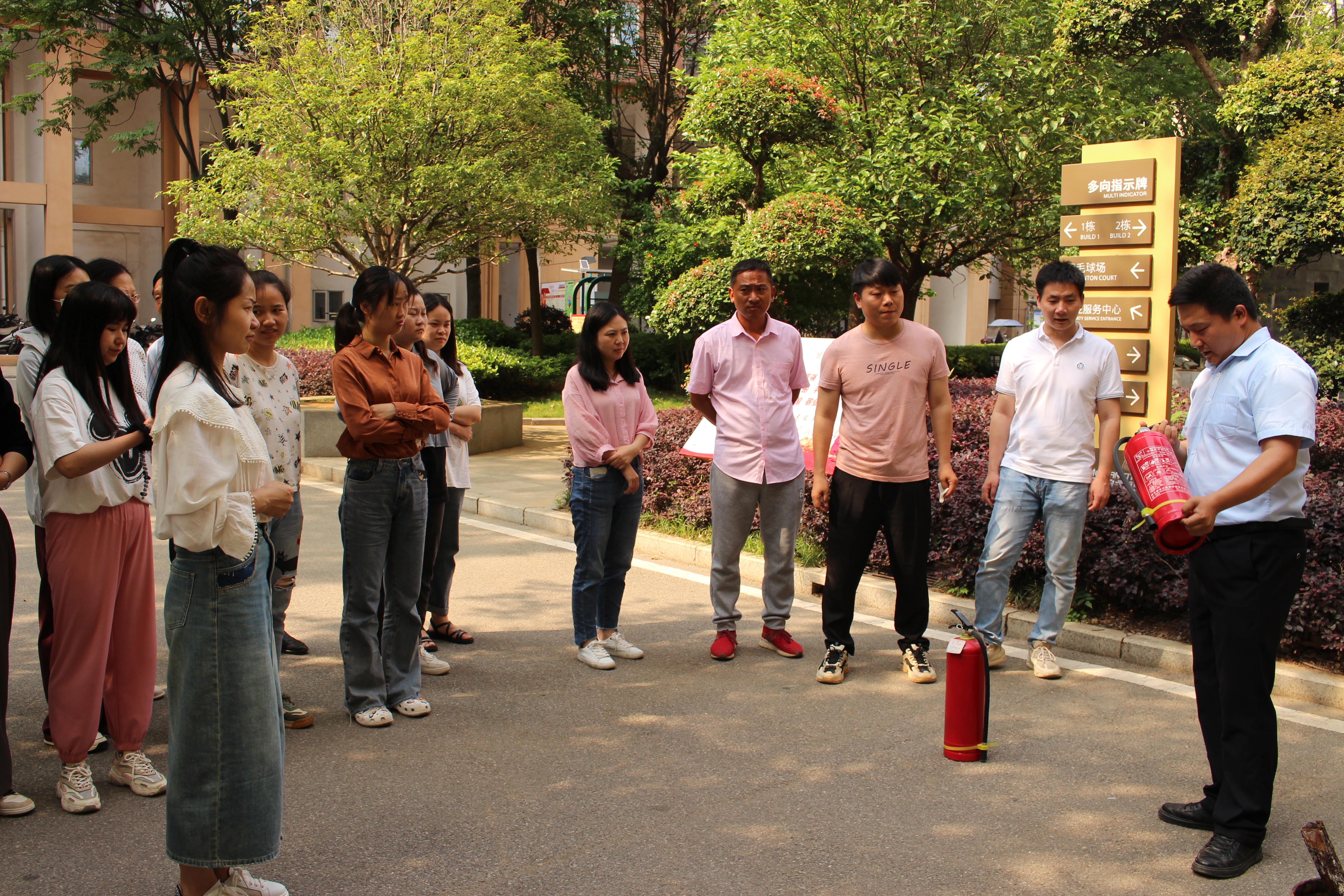 演練順利結(jié)束后,工程部安全主管秦春波還為全體員工介紹了滅火器的使用方法,并當(dāng)場演示了滅火器“提、拔、握、壓”的操作流程,讓員工以實(shí)戰(zhàn)方式參與,使在場人員更直觀地掌握相關(guān)知識。