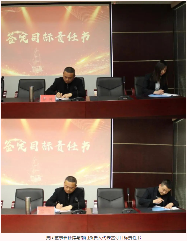在2024年目標責(zé)任書簽訂儀式上,集團董事長、總經(jīng)理、副總經(jīng)理依次與部門負責(zé)人代表、項目代表簽訂目標責(zé)任書。責(zé)任書不僅僅是一紙文件,它承載著集團的期望與信任,代表著責(zé)任與擔(dān)當(dāng),猶如千鈞之重。