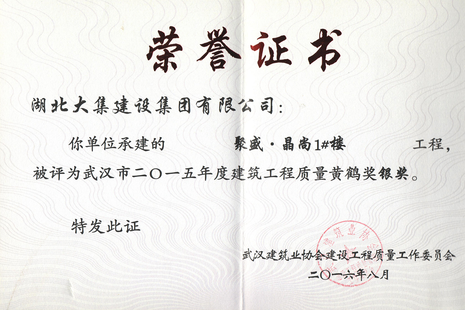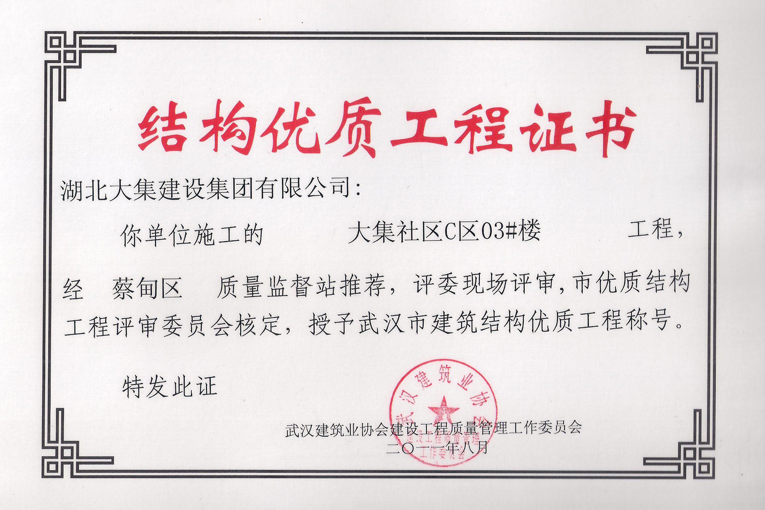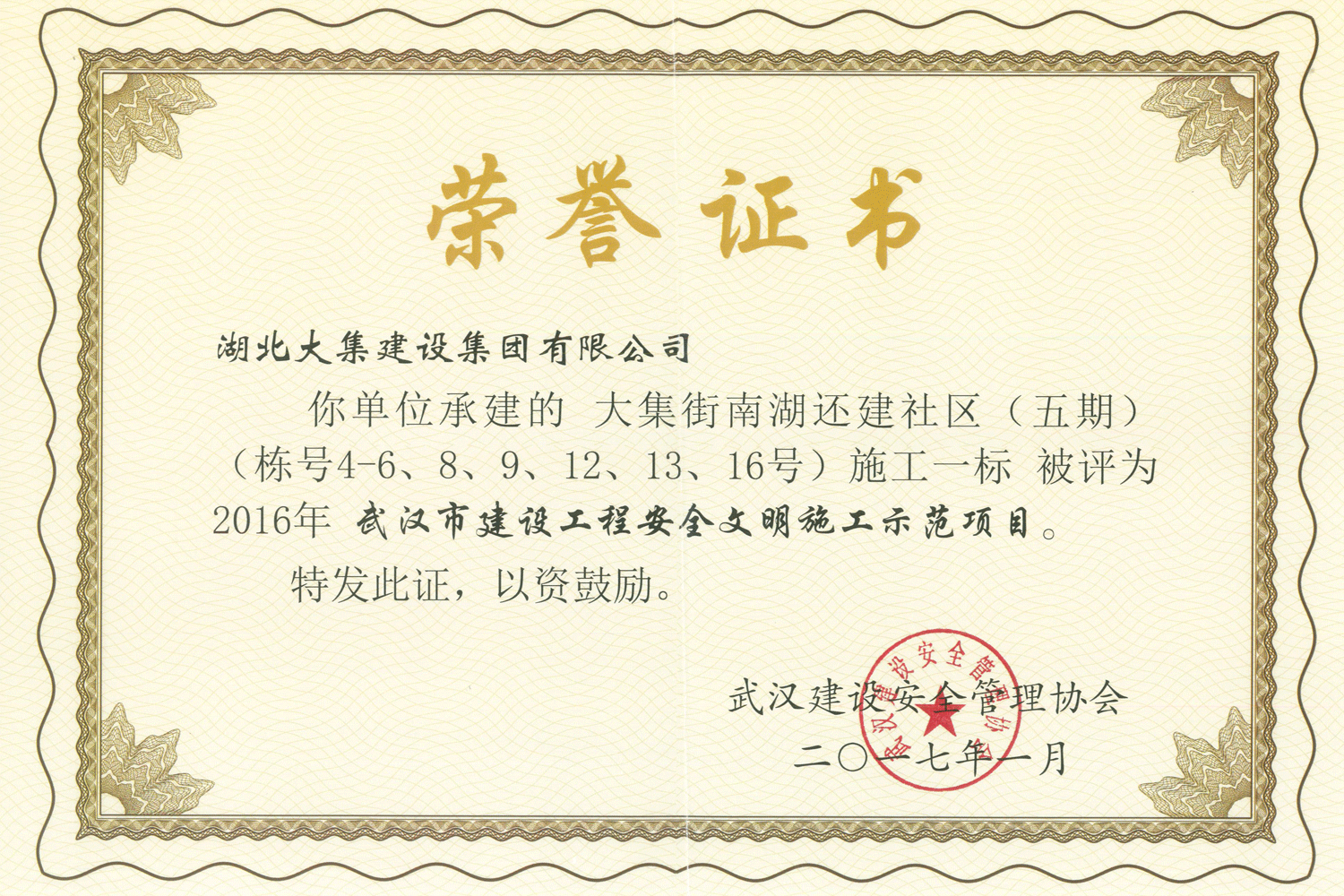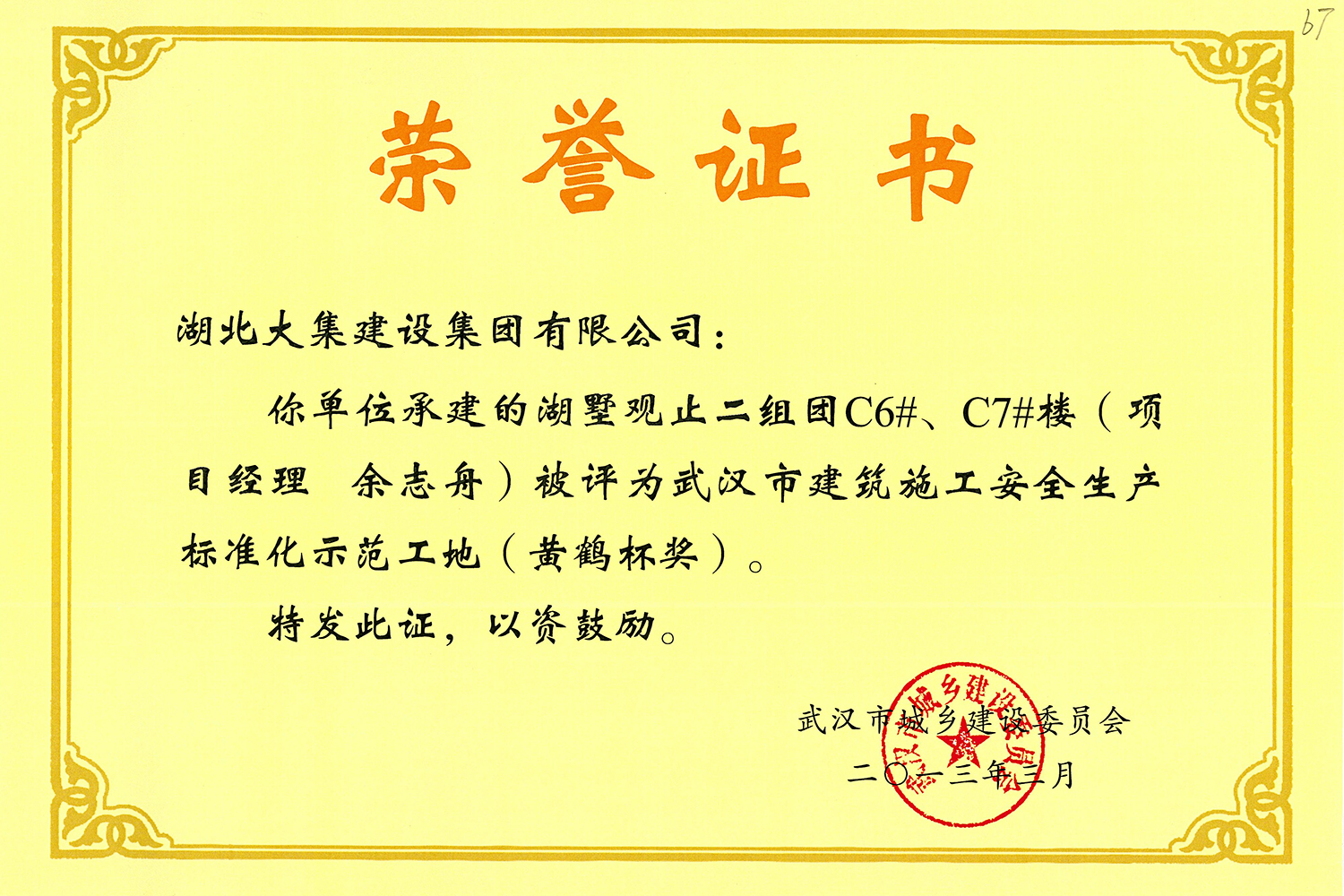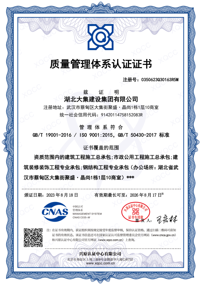 集團(tuán)秉持“安全是紅線,質(zhì)量是品牌,文明施工是形象”的企業(yè)宗旨,不斷加強(qiáng)全面管理,注重提高自身素質(zhì),以完美的履約、優(yōu)良的質(zhì)量、滿意的服務(wù),贏得了信譽(yù)。近年來,湖北大集建設(shè)集團(tuán)先后與中石化集團(tuán)、中鐵上海工程局、中建八局、中鐵十二局、碧桂園集團(tuán)、世茂集團(tuán)、綠地集團(tuán)等央企、國企、地方標(biāo)志性建設(shè)單位合作,先后承建了“碧桂園知音豪庭”項(xiàng)目、“碧桂園光谷云境”項(xiàng)目、“大集G區(qū)蓮溪花園”項(xiàng)目等多個高層住宅小區(qū);承建了世茂龍灣46#、47#、48#地塊、花博匯桃李春風(fēng)二期等多個精品高端別墅群項(xiàng)目;承建了“南湖中學(xué)”、“南湖小學(xué)”、“南湖幼兒園”、“博奧幼兒園”等多個教育配套項(xiàng)目;承建了“孝感英眾超算終端科技產(chǎn)業(yè)園”、“鴻盛華全球航空服務(wù)產(chǎn)業(yè)園”、“盟盛汽車產(chǎn)業(yè)園”、“中原印務(wù)晶毅”等多個具有特殊設(shè)備安裝需求的鋼、混結(jié)構(gòu)工業(yè)廠房項(xiàng)目;承建了“常福商務(wù)廣場”等大型商業(yè)綜合體;承建了后官湖綠道二期、三期,常貴路西延伸段、黃星大道等多條大型道路市政項(xiàng)目;自主開發(fā)了“聚盛晶尚”住宅項(xiàng)目,改善人居環(huán)境,引領(lǐng)綠色棲居新領(lǐng)域;所有工程嚴(yán)格執(zhí)行施工作業(yè)全過程質(zhì)量、安全管理,多個項(xiàng)目被省、市級監(jiān)管單位授予“省結(jié)構(gòu)優(yōu)質(zhì)”、“省安全文明施工現(xiàn)場”、“市結(jié)構(gòu)優(yōu)質(zhì)”、“市安全文明施工示范項(xiàng)目”、“樣板工地”等榮譽(yù)稱號。