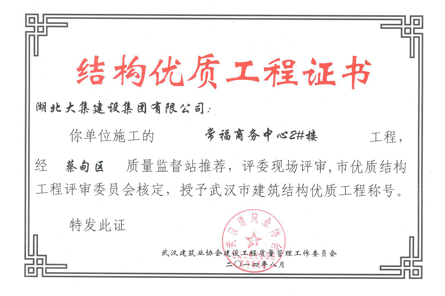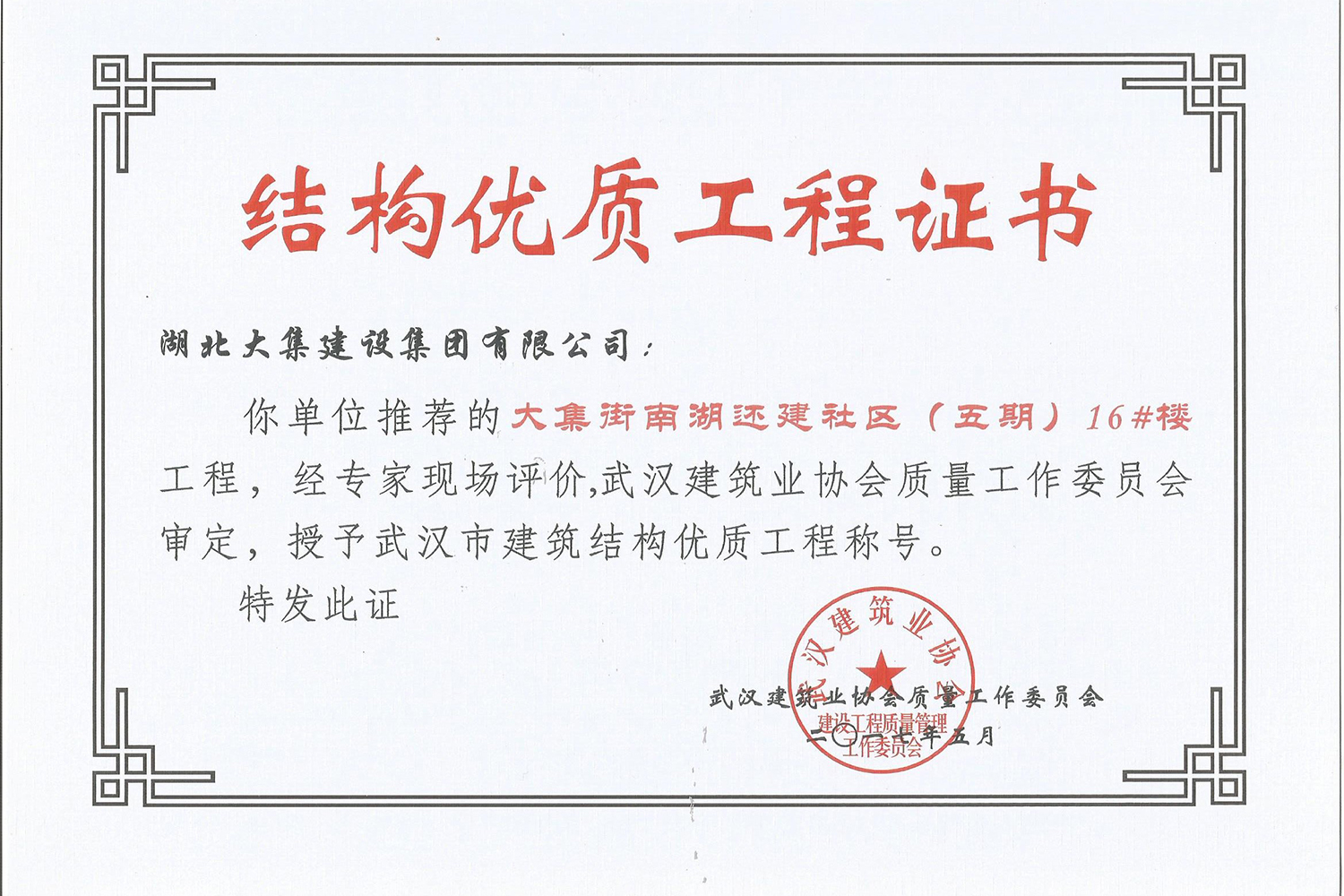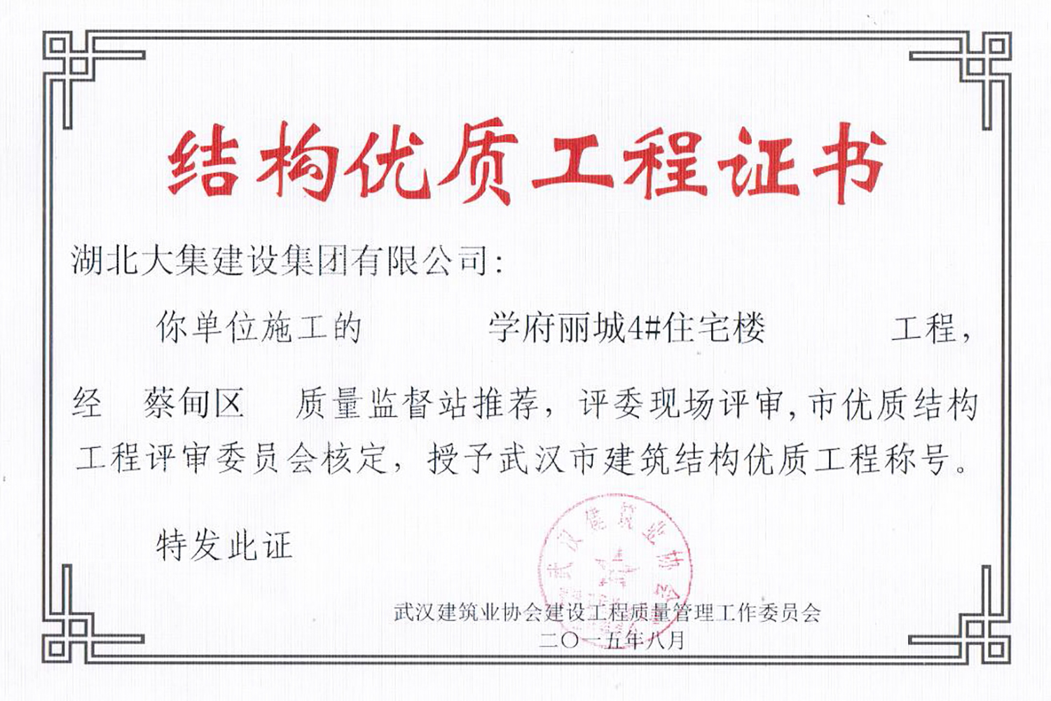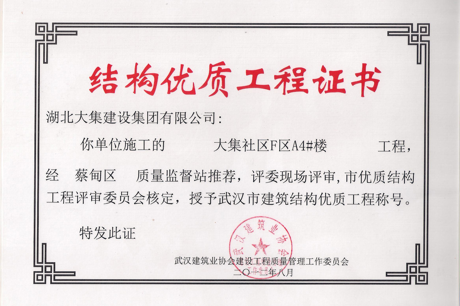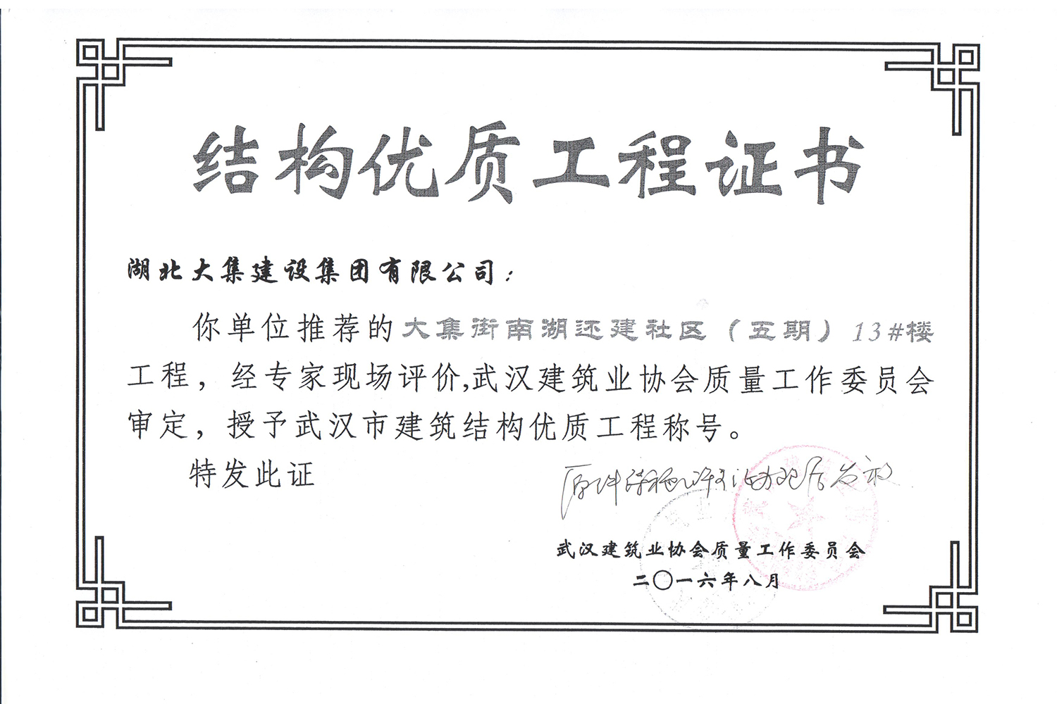 集團(tuán)秉持“安全是紅線,質(zhì)量是品牌,文明施工是形象”的企業(yè)宗旨,不斷加強(qiáng)全面管理,注重提高自身素質(zhì),以完美的履約、優(yōu)良的質(zhì)量、滿意的服務(wù),贏得了信譽(yù)。近年來,湖北大集建設(shè)集團(tuán)先后與中石化集團(tuán)、中鐵上海工程局、中建八局、中鐵十二局、碧桂園集團(tuán)、世茂集團(tuán)、綠地集團(tuán)等央企、國企、地方標(biāo)志性建設(shè)單位合作,先后承建了“碧桂園知音豪庭”項(xiàng)目、“碧桂園光谷云境”項(xiàng)目、“大集G區(qū)蓮溪花園”項(xiàng)目等多個高層住宅小區(qū);承建了世茂龍灣46#、47#、48#地塊、花博匯桃李春風(fēng)二期等多個精品高端別墅群項(xiàng)目;承建了“南湖中學(xué)”、“南湖小學(xué)”、“南湖幼兒園”、“博奧幼兒園”等多個教育配套項(xiàng)目;承建了“孝感英眾超算終端科技產(chǎn)業(yè)園”、“鴻盛華全球航空服務(wù)產(chǎn)業(yè)園”、“盟盛汽車產(chǎn)業(yè)園”、“中原印務(wù)晶毅”等多個具有特殊設(shè)備安裝需求的鋼、混結(jié)構(gòu)工業(yè)廠房項(xiàng)目;承建了“常福商務(wù)廣場”等大型商業(yè)綜合體;承建了后官湖綠道二期、三期,常貴路西延伸段、黃星大道等多條大型道路市政項(xiàng)目;自主開發(fā)了“聚盛晶尚”住宅項(xiàng)目,改善人居環(huán)境,引領(lǐng)綠色棲居新領(lǐng)域;所有工程嚴(yán)格執(zhí)行施工作業(yè)全過程質(zhì)量、安全管理,多個項(xiàng)目被省、市級監(jiān)管單位授予“省結(jié)構(gòu)優(yōu)質(zhì)”、“省安全文明施工現(xiàn)場”、“市結(jié)構(gòu)優(yōu)質(zhì)”、“市安全文明施工示范項(xiàng)目”、“樣板工地”等榮譽(yù)稱號。