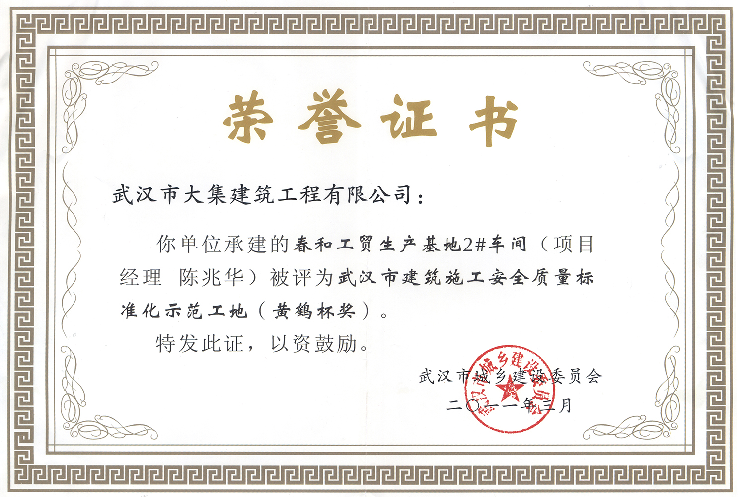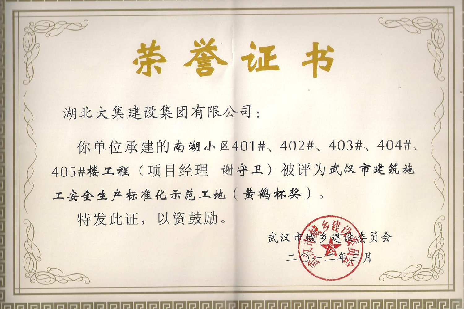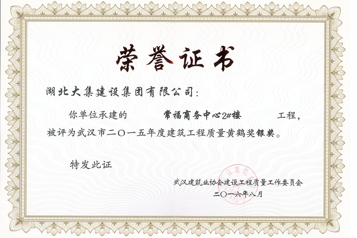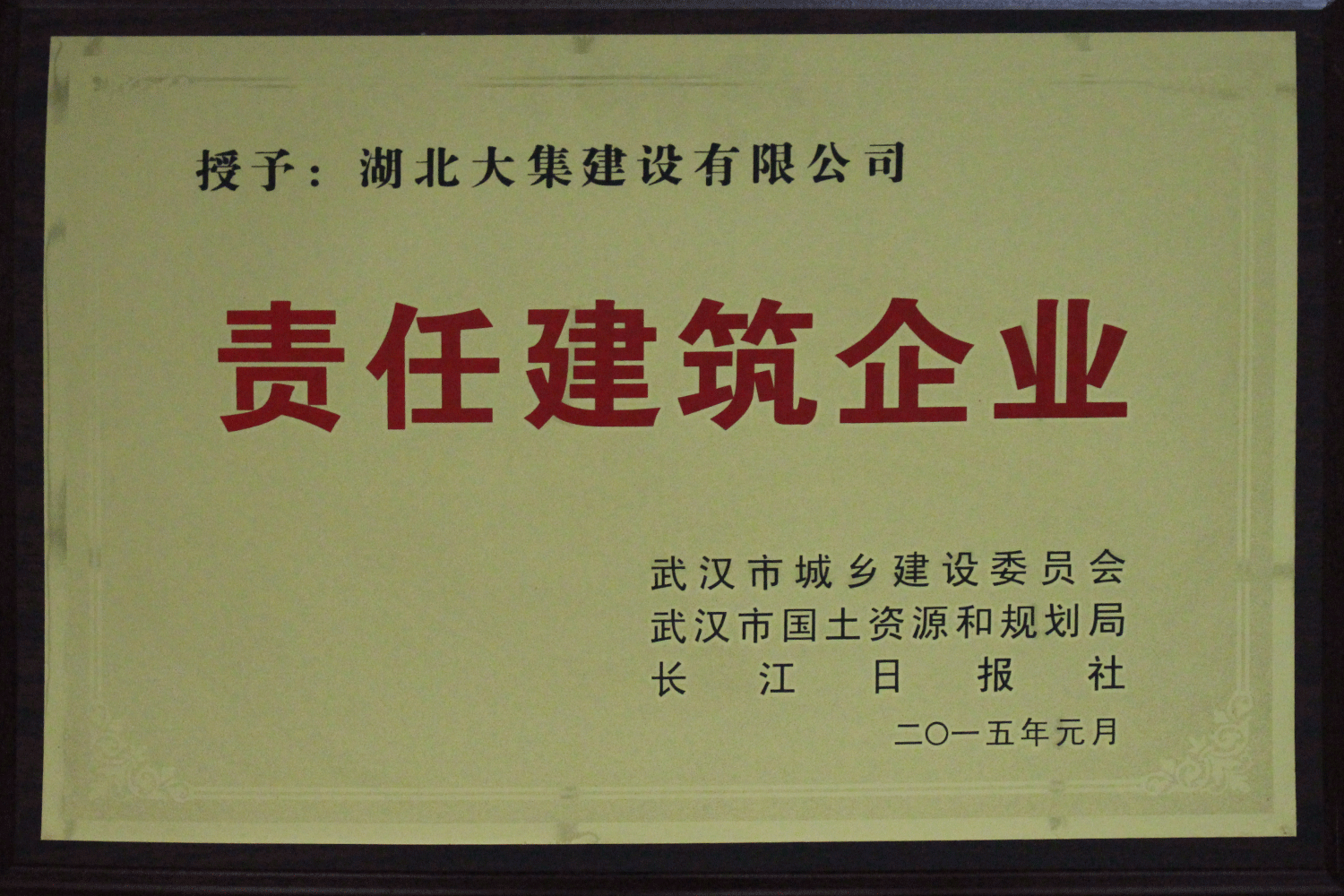 集團(tuán)在發(fā)展壯大的同時(shí),堅(jiān)持守法經(jīng)營、依法納稅,堅(jiān)持履行社會責(zé)任,多年來積極投身社會公益事業(yè)。省、市、區(qū)行業(yè)主管部門連續(xù)多年授予公司為“武漢地區(qū)建筑業(yè)AAA信譽(yù)企業(yè)”、“武漢地區(qū)建筑業(yè)優(yōu)秀企業(yè)”、“武漢市最具成長性民營建筑企業(yè)”、“勞動保障守法誠信A級單位”等榮譽(yù),多次被省、市工商局評為“守合同重信用”企業(yè),多年被地方政府授予“納稅貢獻(xiàn)獎”。