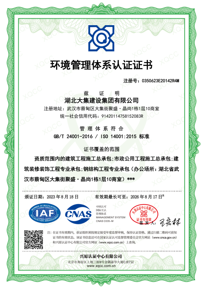 湖北大集建設(shè)集團(tuán)有限公司成立于1990年,注冊資本10500萬元,是武漢市蔡甸區(qū)本土建筑行業(yè)的龍頭企業(yè),在行業(yè)內(nèi)具有一定的品牌影響力。擁有建筑工程施工總承包一級、市政公用工程施工總承包一級、橋梁工程專業(yè)承包一級、隧道工程專業(yè)承包一級、輸變電工程專業(yè)承包一級、鋼結(jié)構(gòu)工程專業(yè)承包一級、地基基礎(chǔ)工程專業(yè)承包一級、電子與智能化工程專業(yè)承包一級、建筑裝修裝飾工程專業(yè)承包一級等多項(xiàng)資質(zhì)?,F(xiàn)已形成“建筑施工、園林綠化、文化旅游、房地產(chǎn)開發(fā)與物業(yè)管理”四大產(chǎn)業(yè)格局,并通過了行業(yè)和國家質(zhì)量管理體系、環(huán)境管理體系和職業(yè)健康安全管理體系認(rèn)證,三大安全管理體系日臻完善,是一家綜合力較強(qiáng)的綜合性建筑施工企業(yè)。