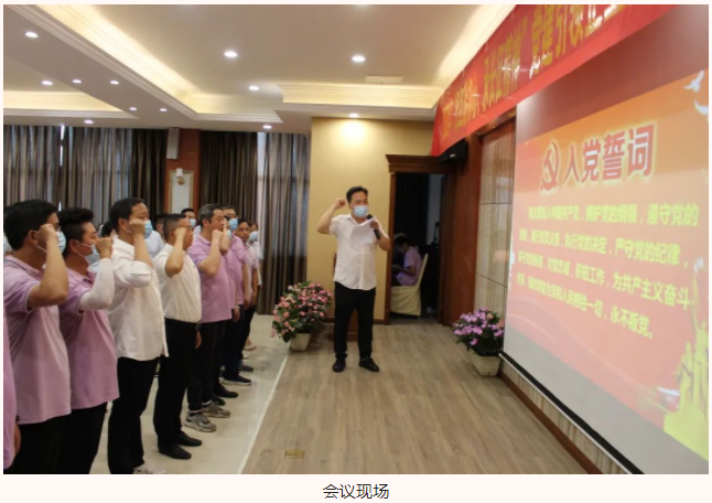 會議開始,湖北大集建設(shè)集團黨支部書記徐遠征同志帶領(lǐng)全體黨員重溫入黨誓詞。在徐遠征同志領(lǐng)誓下,全體黨員舉起右拳,莊嚴宣誓,鏗鏘有力的聲音,久久響徹耳邊,共同表達了不忘初心,牢記使命,永遠奮斗的堅定決心。
