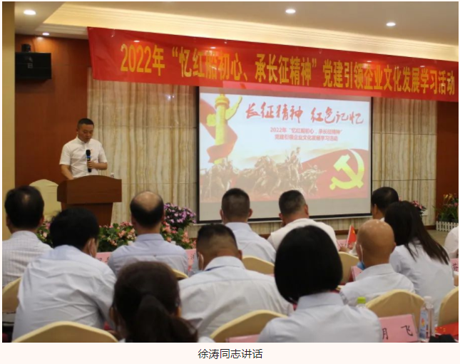 為慶祝建黨101周年,進一步推進黨史學(xué)習(xí)教育,增強隊伍凝聚力、向心力與戰(zhàn)斗力,湖北大集建設(shè)集團聯(lián)合武漢閱景匯公司于6月16日上午共同開展2022年“憶紅船初心,承長征精神”黨建引領(lǐng)企業(yè)文化發(fā)展學(xué)習(xí)活動,兩家公司的全體黨員、入黨積極分子以及中高層領(lǐng)導(dǎo)、優(yōu)秀骨干員工參加了學(xué)習(xí),會議由湖北大集建設(shè)集團黨支部書記徐遠征主持。