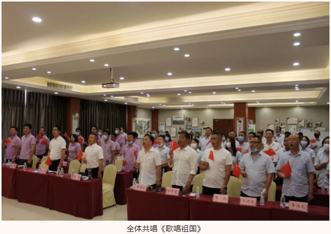 “五星紅旗迎風(fēng)飄揚,勝利歌聲多么響亮;歌唱我們親愛的祖國,從今走向繁榮富強……”會議最后,全體起立,共唱《歌唱祖國》,用嘹亮的歌聲表達了對黨和祖國的無限熱愛和深深祝福。