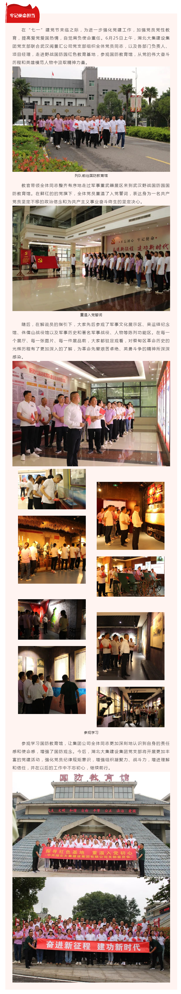黨史學(xué)習(xí)教育|湖北大集建設(shè)集團(tuán)黨支部赴野戰(zhàn)國防園參觀學(xué)習(xí)