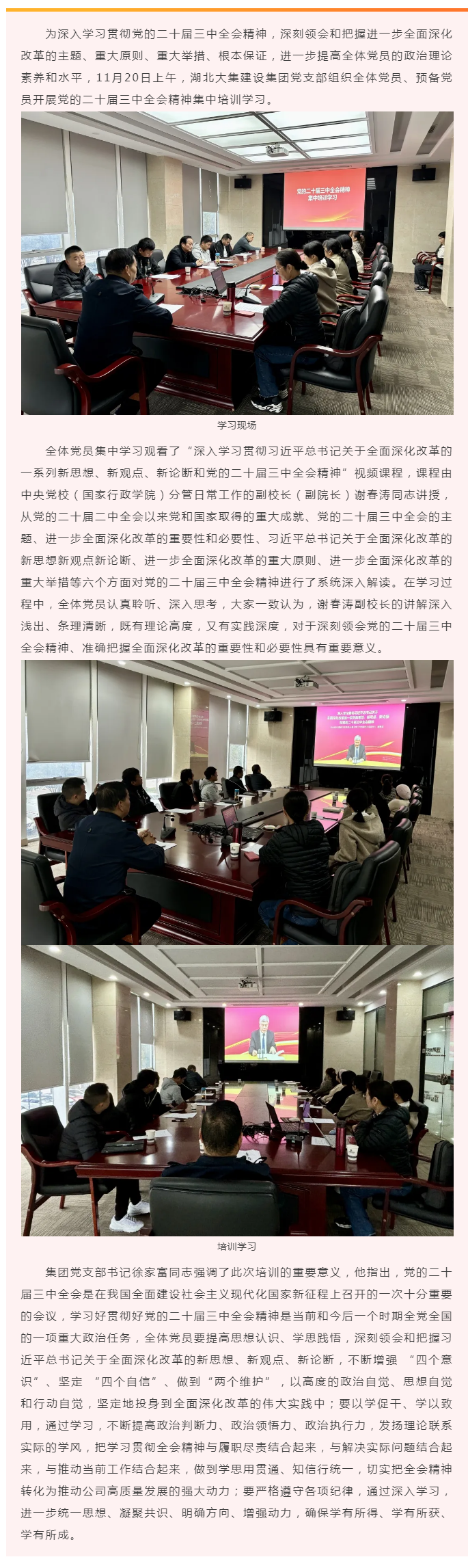 湖北大集建設(shè)集團(tuán)黨支部開(kāi)展黨的二十屆三中全會(huì)精神集中培訓(xùn)學(xué)習(xí)