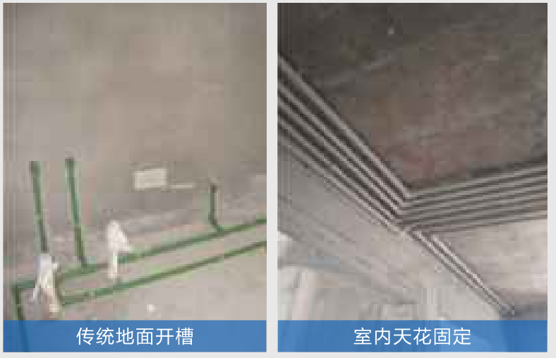 戶內(nèi)水管安裝按照以往的做法會(huì)在建筑找平層開(kāi)槽再進(jìn)行預(yù)埋,裝修完成后如遇到滲漏水很難進(jìn)行維修。為實(shí)現(xiàn)無(wú)后顧之憂,全部設(shè)置在天花,公共部位進(jìn)行吊頂掩蓋,戶內(nèi)走梁交接陰角,用木盒子裝修掩蓋,這樣不但解后期維修問(wèn)題,樓板地面不再開(kāi)槽,大大減少建筑找平厚度,使戶內(nèi)凈高空間增大。