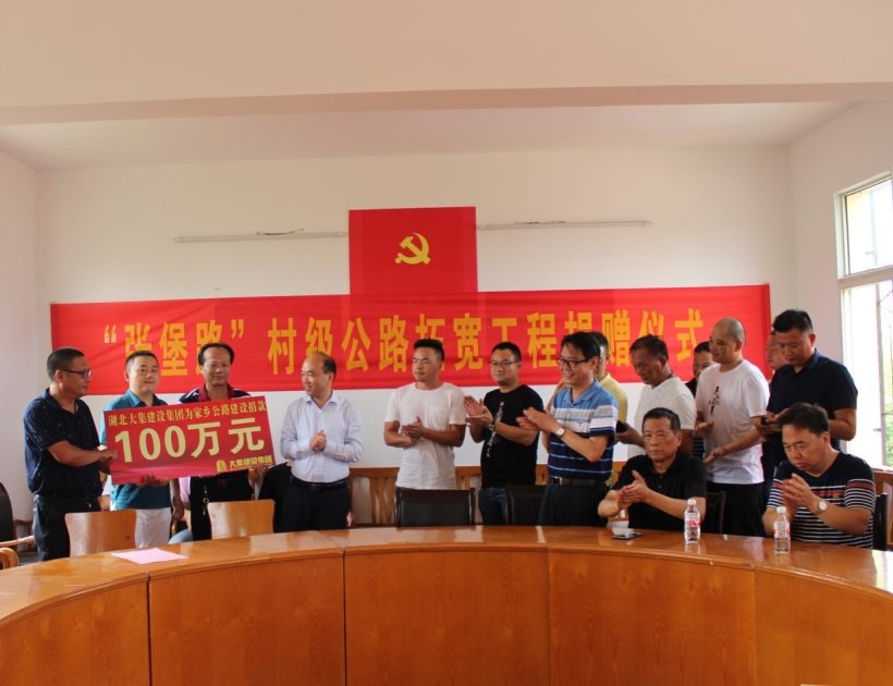 情系家鄉(xiāng)發(fā)展,勇?lián)鐣?zé)任。7月26日,集團(tuán)董事長徐濤、總經(jīng)理徐遠(yuǎn)征、副總經(jīng)理徐家富及各項目經(jīng)理來到蔡甸區(qū)大集街堡家咀村村委會,為“張堡路”村級公路拓寬工程進(jìn)行捐贈,集團(tuán)董事長徐濤代表湖北大集建設(shè)集團(tuán)為該工程捐款一百萬元。